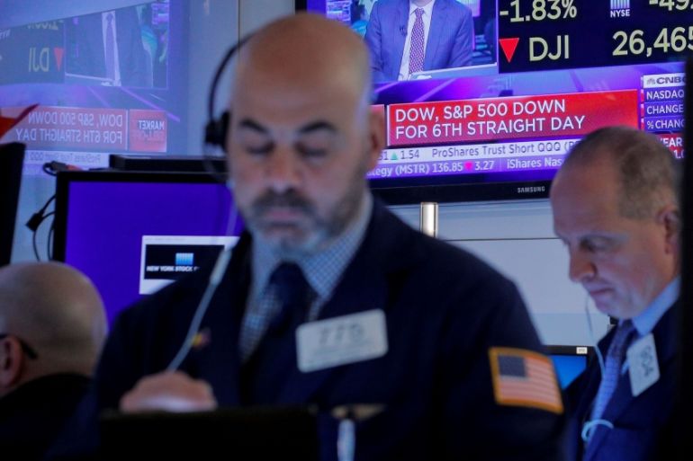 US stock prices drop for sixth straight session in a rout that has wiped out nearly $2 trillion in value.
