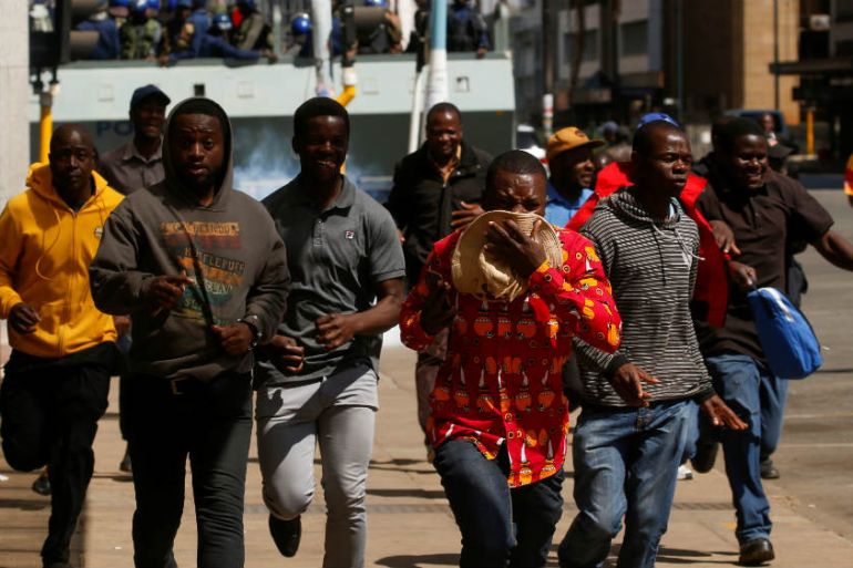 Hundreds of demonstrators gathering in central Harare are met with batons and tear gas.