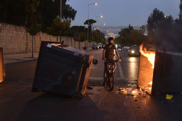 Beirut, Lebanon – Angry Lebanese protesters blocked roads across the country with burning tyres, debris and their vehicles, incensed over the local currency’s depreciation by more than 25 percent in just two days.