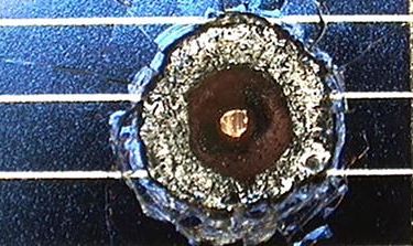 The big question is “By what?” A micrometeoroid, which is not larger than 2mm?