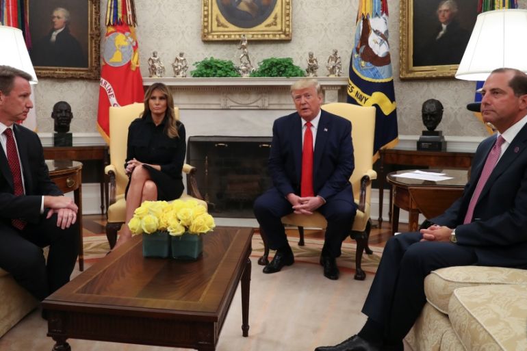 US Department of Health and Human Services Secretary Alex Azar told reporters at a meeting with Trump in the Oval Office on Wednesday that children were becoming addicted to nicotine due to attractive flavours of e-cigarettes.