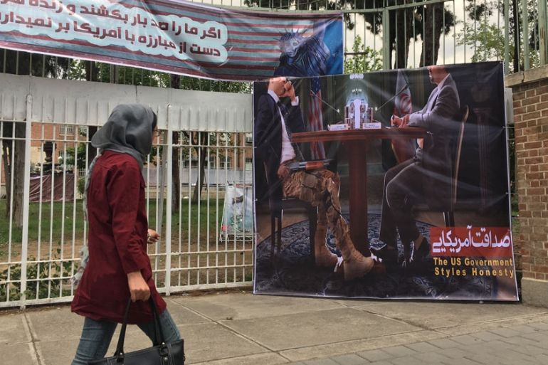 A large picture displayed at the entrance to the old American embassy was perhaps the best illustration of how many Iranians feel about the nuclear deal these days, regardless of whether they supported it or not.