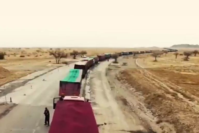 Footage shows a long line of trucks on the Mongolian side of the border waiting to cross.