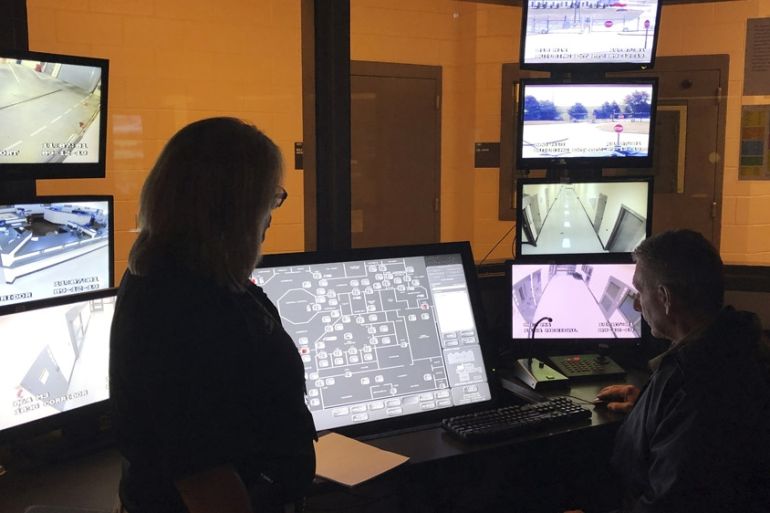 On a tour of the sprawling jail on a recent morning, the sheriff pointed out a central command system that allows staff to monitor inmates and remotely open their cells. Mangum also stopped at a videoconferencing system that lets inmates talk to family members from their cellblocks.