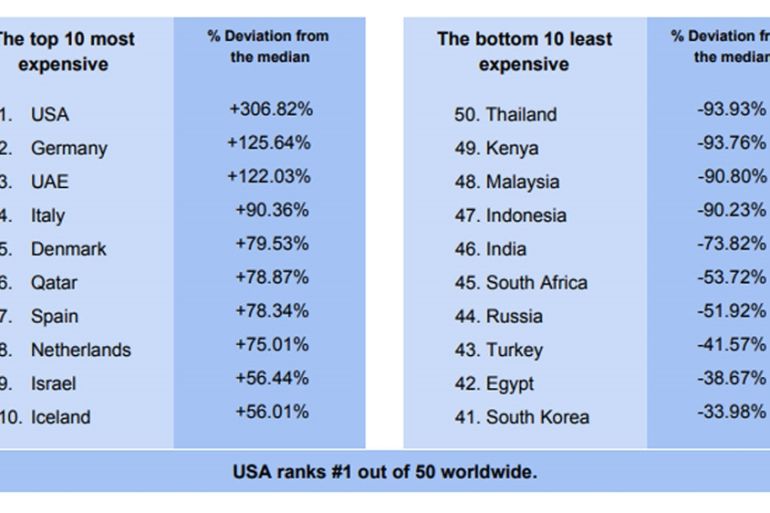 The US was followed by Germany and the United Arab Emirates (UAE) as having the most expensive medicines, while Kenya and Malaysia have the cheapest.
