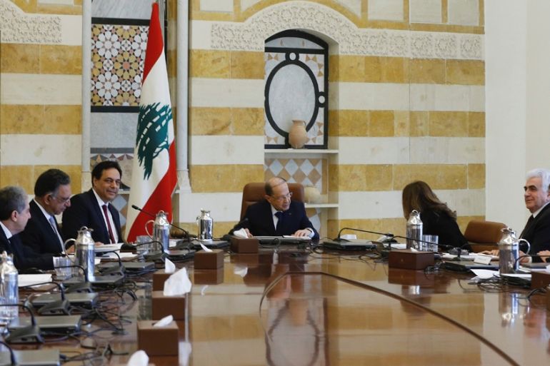 Lebanon's President Michel Aoun heads the first meeting of the new cabinet at the presidential palace in Baabda [Mohamed Azakir/Reuters]
