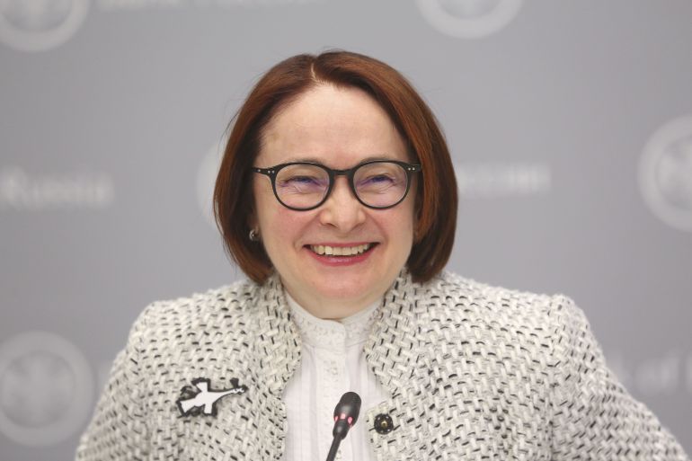 “The bullfinch is a beautiful winter bird,” Nabiullina said. “It’s a bird that can withstand various frosts. It’s hardy.”