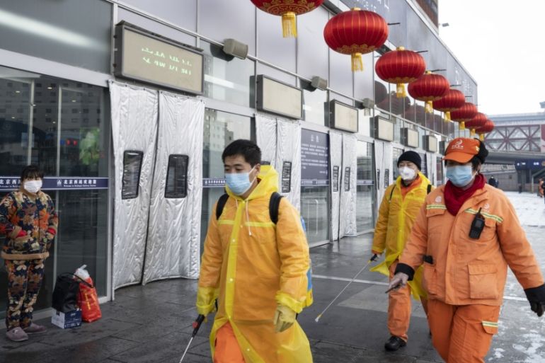 Workers at train station in Beijing