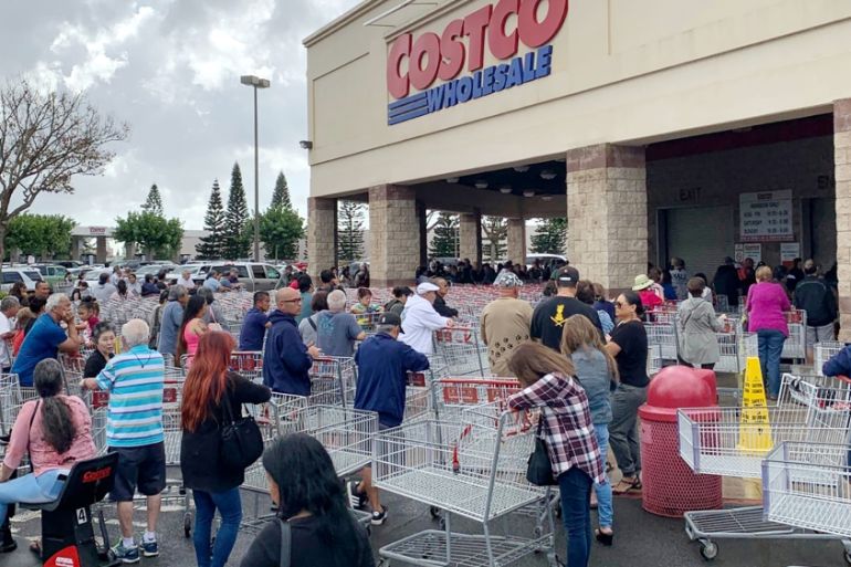 On Friday in Honolulu, Hawaii, retired telecommunications worker Duane Tanouye, 62, waited in line outside a Costco with more than 200 other people.