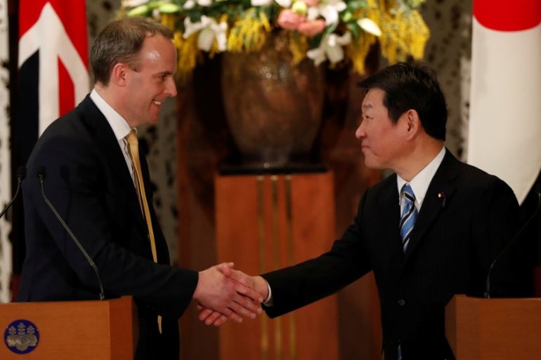 Following Brexit, Dominic Raab says he is looking for ‘ambitious’ trade deal with Japan to be completed before end-2020.