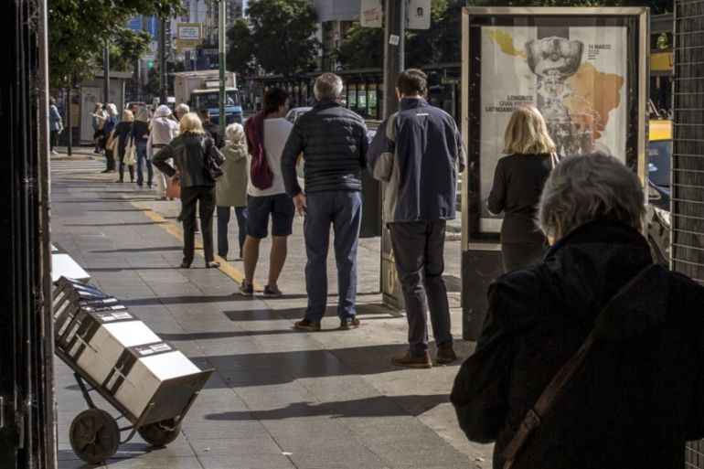 Argentines left their homes in droves as banks reopen their branches to give out government assistance.