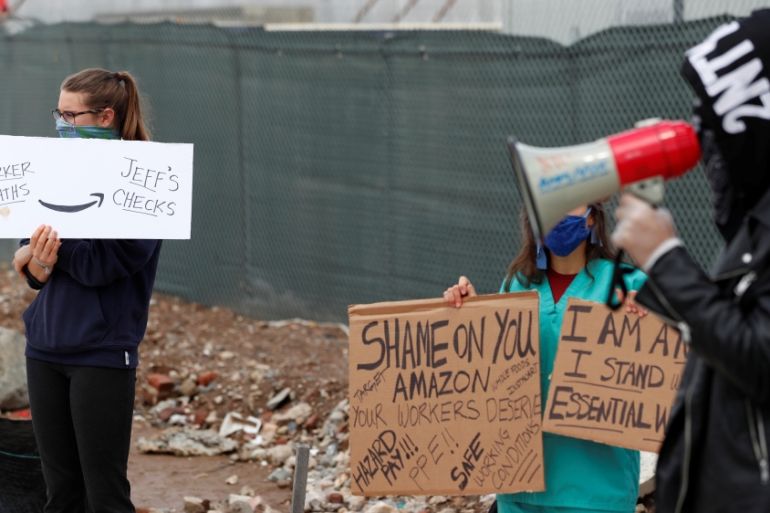 Amazon “objects to the irresponsible actions of labour groups and others in spreading misinformation and making false claims about Amazon,” she said, adding that the company will spend $800m in the first half of the year on COVID-19 safety measures.