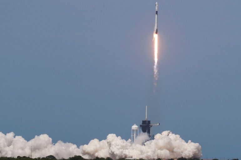 Billionaire Elon Musk’s company launches American astronauts from US soil for the first time in almost a decade.