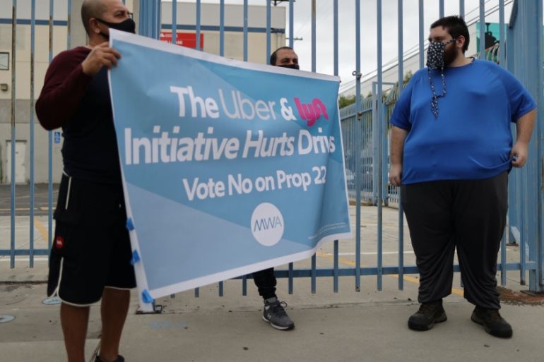 Uber, Lyft, DoorDash, Instacart and Postmates are spending more than $110m to support Proposition 22, a November ballot measure in California to keep drivers as contractors, but with some benefits.