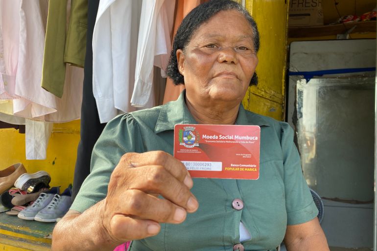 The mumbuca card — distributed to those who earn less than $500 per month — helped Jandira Freitas set up her little street shop after she suffered an accident and could no longer work as a cleaning lady.
