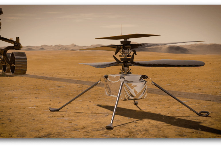 The four-foot robot has already gotten through the rivet-wrecking vibrations of a rocket launch and overnight temperatures on Mars as low as minus 90 degrees Celsius (-130 degrees Fahrenheit). It detached itself from the Perseverance rover, straightened out its legs and raised its solar panel to the sun for the energy it needed to not only keep warm but also lift off from the surface.