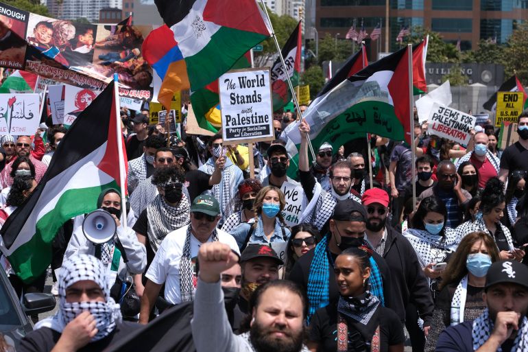 On May 15, Ali and her daughters marched down Wilshire Boulevard in Los Angeles surrounded by a sea of Palestinian flags and signs calling for an end to US military aid to Israel.