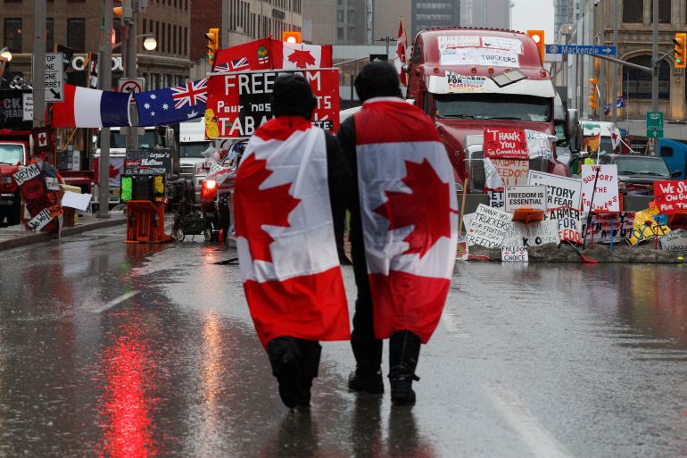 Protestors against Canada’s coronavirus pandemic restrictions have gridlocked the nation’s capital and blocked US border crossings, prompting Trudeau to turn to the emergency powers to take control of the situation.