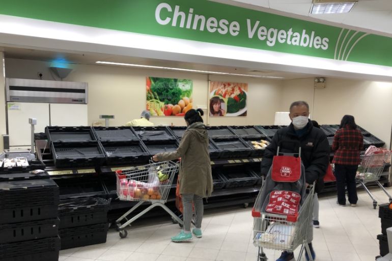 Shelves stocking vegetables were bare across many supermarkets in the city while crowds surged into fresh markets to snap up the limited produce available. Other food remained available.