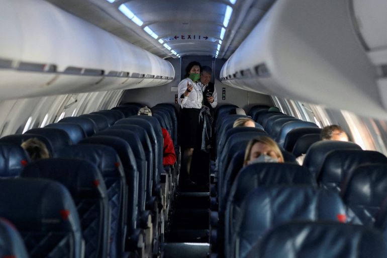 Airlines in the United States usually start the clock for flight attendants when all the passengers are seated and the plane’s doors are closed.
