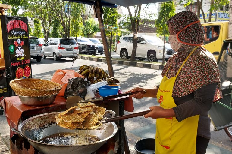 Medan, Indonesia – Each day, Siti Rohani fries hundreds of traditional Indonesian snacks at her roadside stall in Medan, North Sumatra, including three kinds of doughnuts, fried tempeh and tofu, banana fritters, spring rolls and curry puffs.