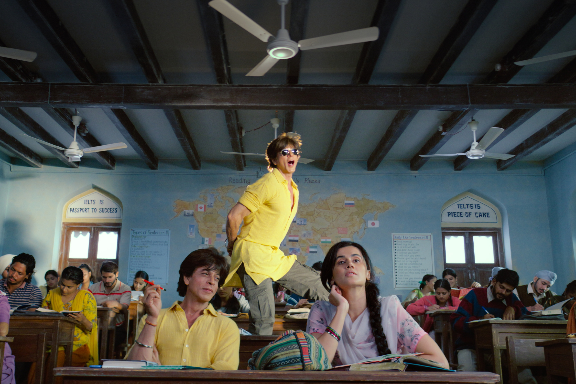 Dunki is set in the north Indian state of Punjab where many homes have overhead water tanks shaped like planes, American milk trucks, or even the Statue of Liberty. They signify where a family member has migrated to.