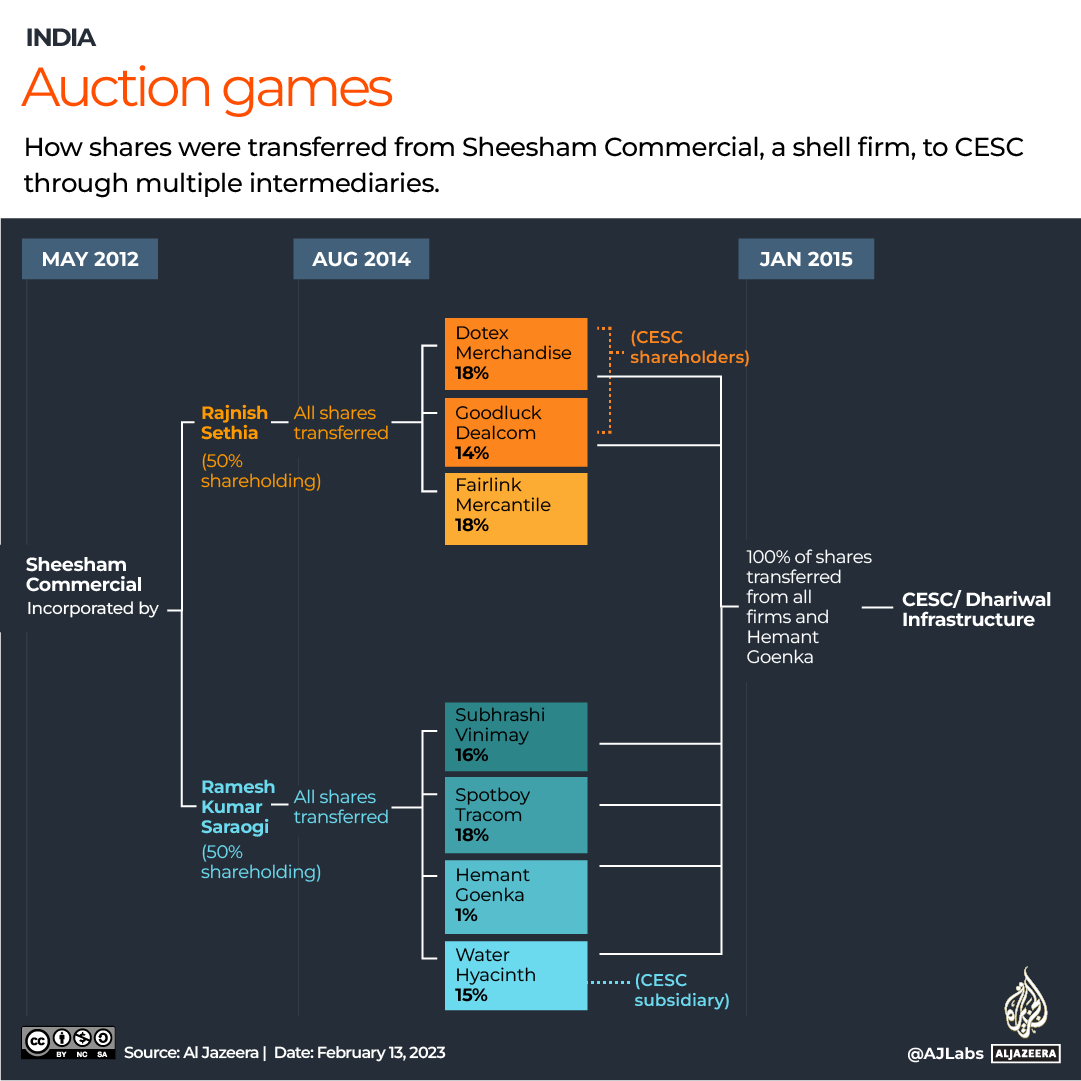 Two days before the due date to apply for the auction of the Sarisatolli coal block in January 2015, CESC, along with two of its subsidiaries Haldia Energy Limited and Dhariwal Infrastructure, acquired the three shell companies – Sheesham Commercial Private Limited, Wigeon Commotrade Private Limited and Water Hyacinth Commosale Private Limited.