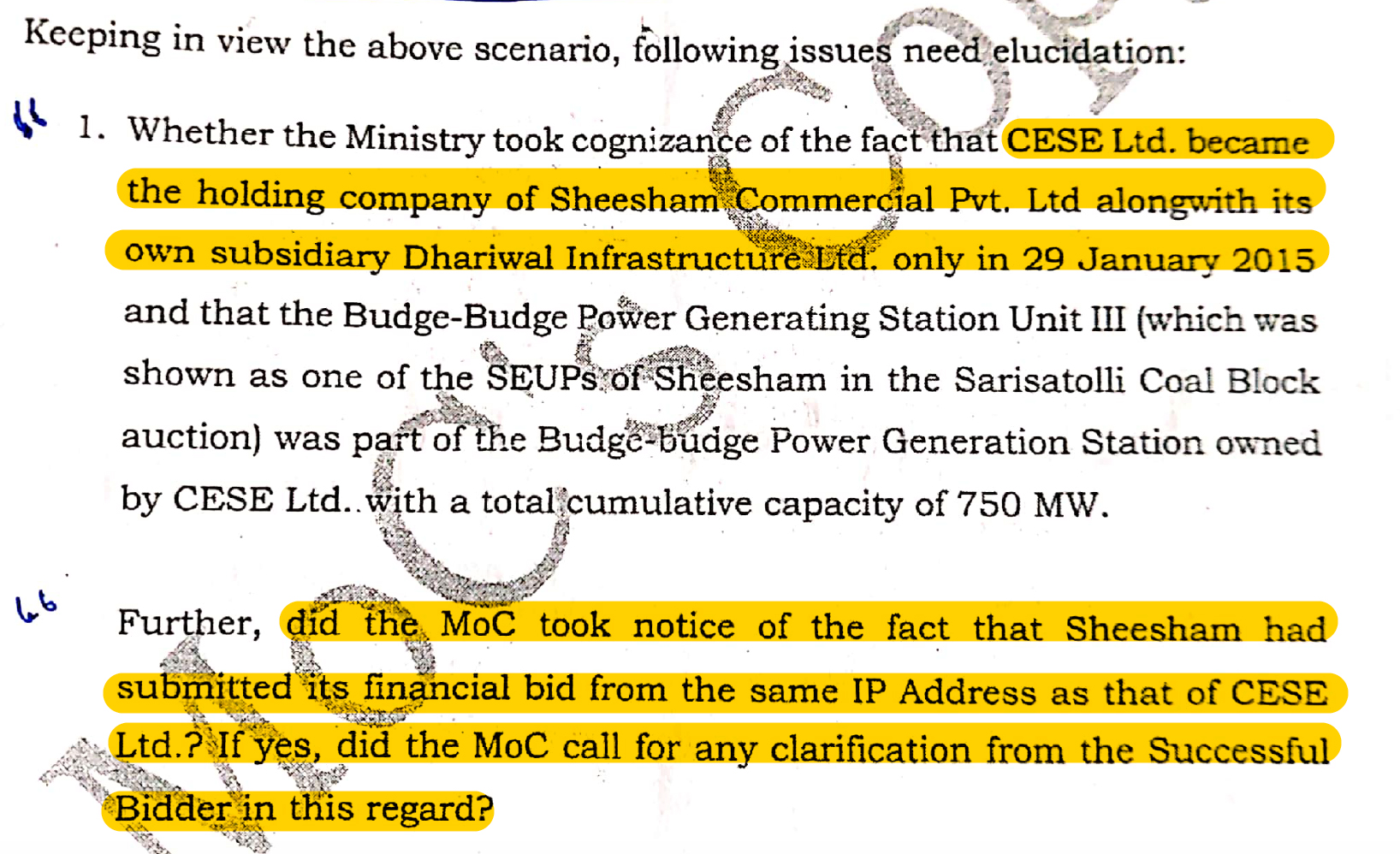 In its October 2015 audit query, CAG asked the coal ministry whether it “took cognizance of the fact that CESC Ltd became the holding company of Sheesham Commercial Pvt Ltd” two days before the due date for bidding applications for Sarisatolli mine. It further asked if it knew that both firms submitted their bids from the same IP address and that Sheesham Commercial listed CESC’s power plant unit as its own in the application. “If yes, did the MoC [Ministry of Coal] call for any clarification from the successful bidder in this regard?” the CAG asked.