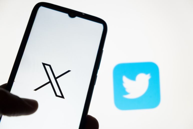 In this photo illustration a X logo is displayed on a smartphone screen and a Twitter logo on a MacBook screen in Athens, Greece on July 24, 2023. Twitter unveils X logo to replace Larry the bird. (Photo Illustration by Nikolas Kokovlis/NurPhoto via Getty Images)