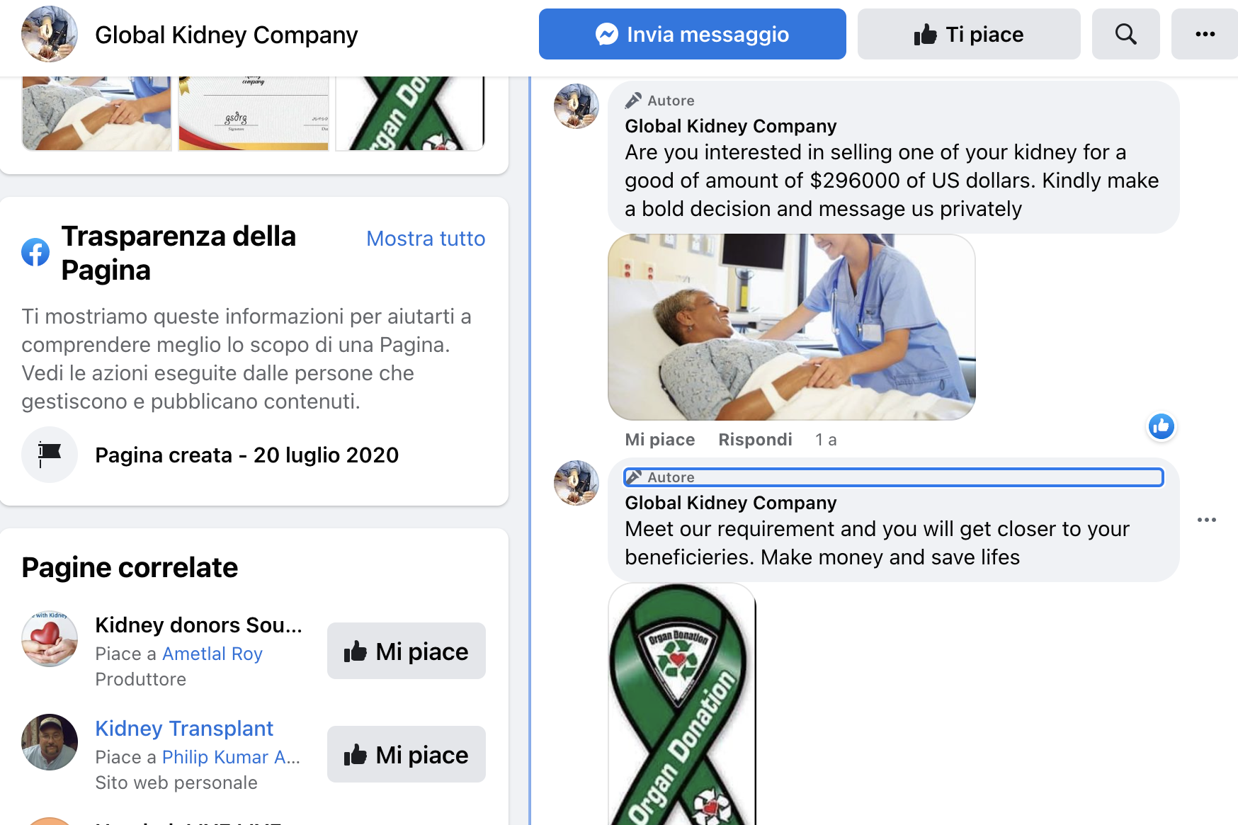 “Global Kidney Company”, a Facebook page that claims to have clinics on almost every continent, posts photos of surgeons at work and comments: “Anyone ready?”