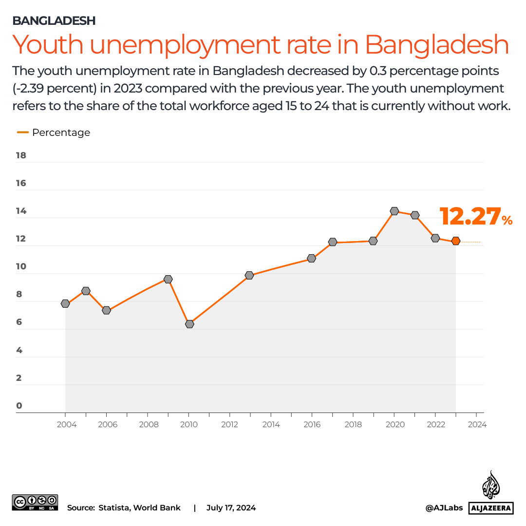 Experts say lack of jobs for university graduates driving unrest in the South Asian country.