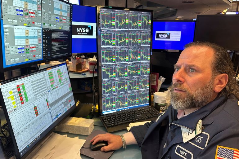 ![People work on the floor at the New York Stock Exchange in New York, [File: Ted Shaffrey/AP]](https://www.aljazeera.com/wp-content/uploads/2025/04/AP25098087133674-1744093361.jpg?resize=770%2C513&quality=80)