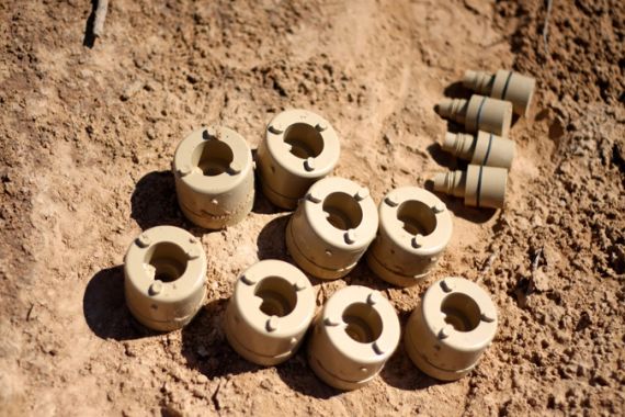 Standing still, sweat trickling down his brow – a mix of fear, and hot sunshine, a team member began scratching the ground around him to reveal four antipersonnel explosives. His colleague stepped across, gingerly pulling the mines out of the ground by their tops, and unscrewing the detonator from the body.