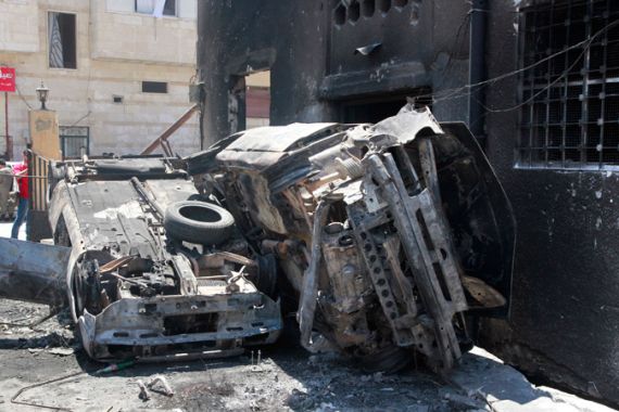Tanks also rumbled into the protest centre of Assi Square, where a large purple flag, which for weeks had hung, declaring: “Long live free Syria. Down with Bashar al-Assad“ was torn down and replaced with graffiti on main streets, witnessed by a reporter for Time, reading “There is no God but Bashar,“ a provocative slur considered blasphemous and deeply offensive by many of Hama‘s religiously conservative Sunni Muslims.