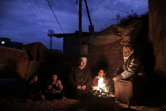 Al-Banna’s husband is an electrician and has installed a primitive battery to power the household – enough to light four small lamps in the apartment that houses more than 20 people, most of them children aged one year and up.