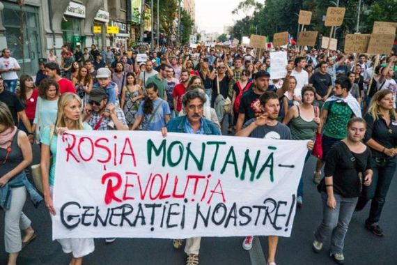 The movement began this September, when the government drafted a law to speed up a controversial mining project that has been in the works for 15 years. The law would allow the Canadian company Gabriel Resources to bypass legal hurdles and expropriate property in the mountain town of Rosia Montana to open Europe’s largest gold mine.