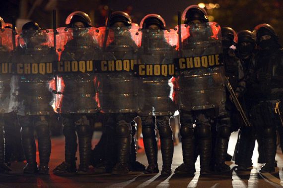 | Brazilian police fire on demonstrators last week [Reuters] |