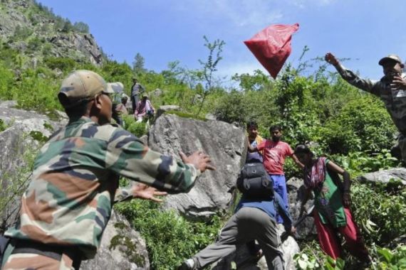 Poor weather meant about 350 survivors of flash floods living near the Indian Himalayan town of Gaurikund would have to wait a bit longer for a helicopter to fly in rations of rice, flour and lentils.