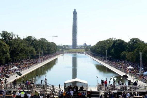 The tens of thousands of people who converged in front of the Lincoln Memorial on Saturday morning were commemorating a different speech – King Jr’s iconic “I Have a Dream” speech during the March on Washington the same year – but the theme for the five-hour-long “Realize the Dream” rally and march was largely the unfinished business of the civil rights movement. The event was organised by the National Action Network, a civil rights group founded by the Reverend Al Sharpton.
