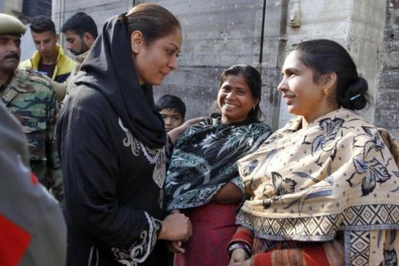 | ‘I think people will agree with my decision with time when we try to bring change,’ Hina Bhat said of her decision to run for the BJP in Indian-administered Kashmir [EPA] |