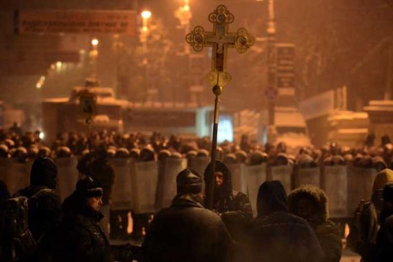 Priests join activists on the front lines of Ukraine’s protests, as officials fear a coup ousting the nation’s leaders.
