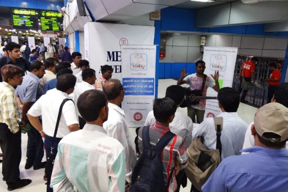 Group seeks to reclaim public spaces for arts by performing at railway stations and entertaining hassled commuters.