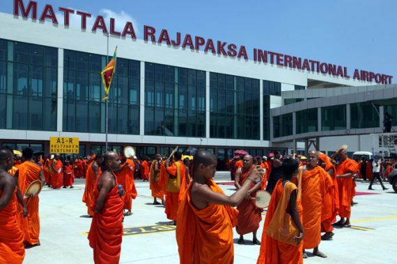 De Silva criticised the airport project, noting construction jobs went to Chinese firms rather than locals, and the airport is barely functioning because the government failed to sign agreements with international airlines before commencing operations.