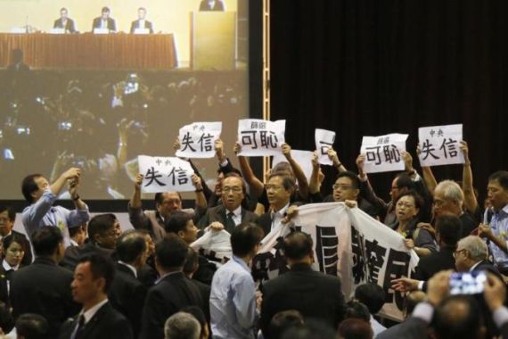 “Security guards took us away – 15 pro-democracy legislators,” he recounted in an interview. “Outside the centre, some Hong Kong citizens voicing their demands for democracy were pepper-sprayed by the police,” said lawmaker Fan, a Neo Democrat. Although Hong Kong’s constitution promises, on paper, the right to demonstrate, he added, “The Hong Kong police are using a heavier hand against people who try to protest.”