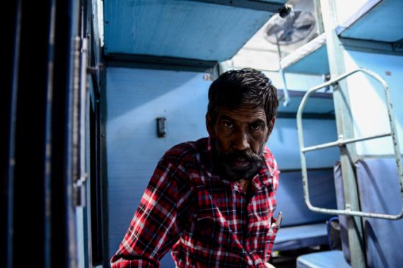 Ramkishan, a man of about 50 breathing heavily and coughing, remained seated until the rush died down, then trudged to the train and secured his reserved window seat.