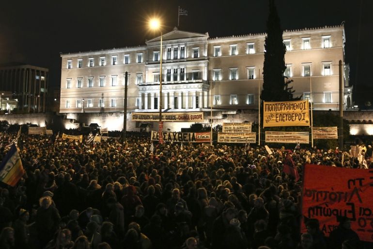 More than 10,000 people gathered outside the Greek parliament and on Syntagma square on Wednesday to show support. It was labelled by some as “the return of the Indignados“, the 2011 anti-austerity movement that gave rise to Syriza in Greece and Podemos in Spain.