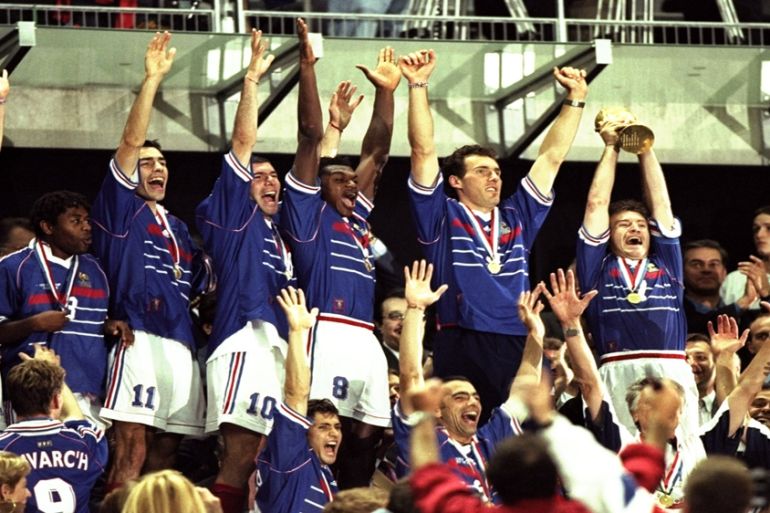 ![Frank Leboeuf of France proudly lifts the trophy after a 3-0 victory in the World Cup final against Brazil at the Stade de France in St Denis on July 12, 1998 [Allsport]](https://www.aljazeera.com/wp-content/uploads/2015/06/f704b0d9710d49a692b224b1e01a9281_18.jpeg?quality=80)