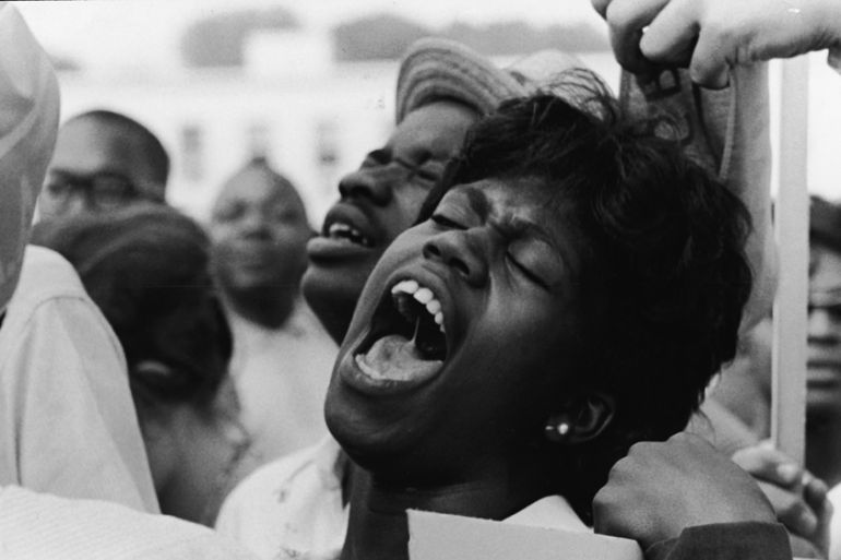 ![A man holds a Confederate flag as demonstrators, including one carrying a sign saying 'More than 300,000 Negroes are Denied Vote in Ala', demonstrate in front of an Indianapolis hotel where then-Alabama Governor George Wallace was staying [Bob Daugherty/AP/File]](https://www.aljazeera.com/wp-content/uploads/2015/08/fdedaccd71af49f9b49893adb4121a78_18.jpeg?quality=80)