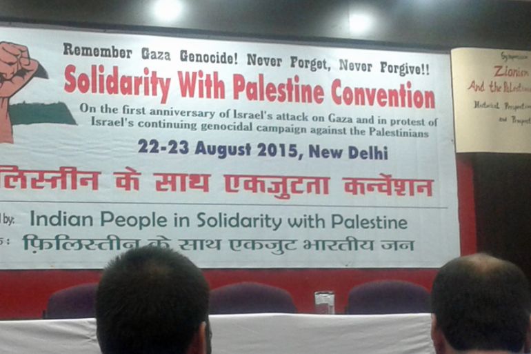 Critics lament New Delhi’s fading pro-Palestinian stance at solidarity convention as Israel relations flourish.