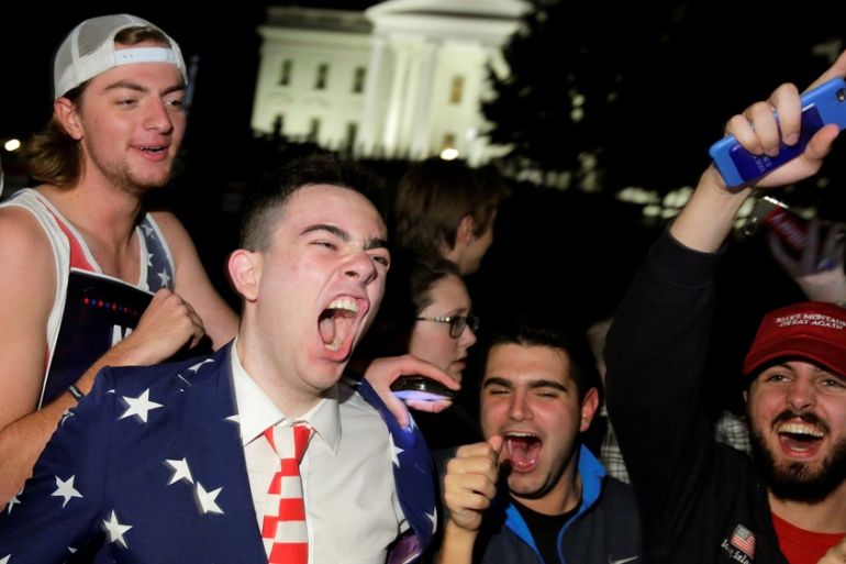 ![People watch Donald Trump deliver his speech after winning the US election [Stephanie Lecocq/EPA]](https://www.aljazeera.com/wp-content/uploads/2016/11/dc8d2af761114516addfc36406f85c2a_18.jpeg?quality=80)